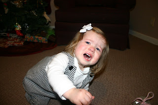 she will wave and say "hey" much more enthusiastically than saying "bye bye". i think it makes her sad to say bye! she still sleeps about 12 hrs a night. she recently started letting me rock her for a few minutes before bed and that just melts my heart! she is still somewhat reserved around strangers but that's a good thing! she's really getting into babydolls. when i pick her up from the church nursery she either has a baby or is pushing one in the doll stroller. i've been waiting for this day since she was born. i'm so excited to see her play with babydolls! something tells me that she's gonna be pretty excited on christmas morning!! :) speaking of christmas - o got a gift in the mail earlier this week so i let her go ahead and open it. she'd rip a piece of paper and run it to the trash can. then another piece and straight to the trash can. i think christmas morning may take longer that i originally thought - especially if she insists on throwing the trash away as she goes. but, hey, who am i to complain about that?!?!